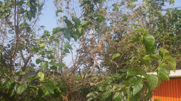 [Ytv영상스토리] 서천군농업기술센터가 이른 무더위로 인해 올해 흰불나방 유충의 확산 속도가 빨라짐에 따라, 감, 사과, 복숭아, 오디 등 과수재배 농가에 피해 최소화를 위해 유충기에 신속한 방제를 당부했다.