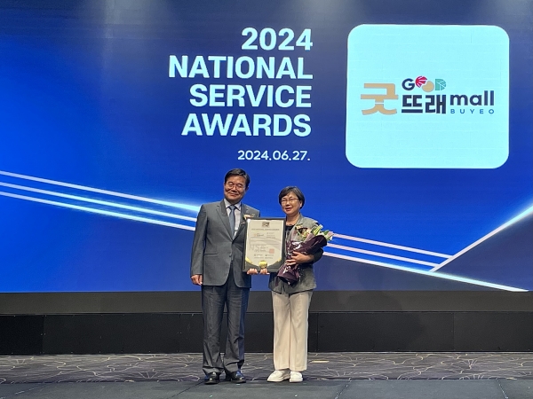 [Ytv영상스토리] 부여군의 공식 농특산물 온라인 쇼핑몰 “굿뜨래몰”이 산업정책연구원이 주최하는 ‘2024년 국가서비스대상’ 농특산물 쇼핑몰 부문에서 2년 연속 대상을 수상했다고 27일 밝혔다.