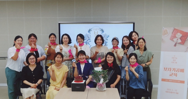 다도교육은 박용금 청풍인성예절협회 원장의 지도로 차예절지도사 3급 자격증반으로 운영됐고 보자기 공예 교육은 이종옥 보자기공예공방 ‘옥보자기’ 대표의 지도 하에 교육 수료 후 보자기공예지도사 2급 자격증을 발급받을 수 있도록 진행됐다.