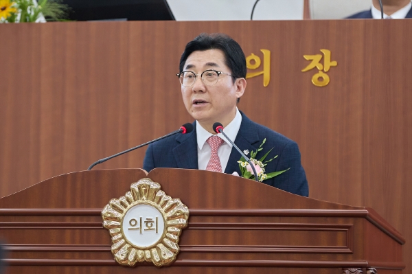 박경귀 시장은 1일 제9대 아산시의회 후반기 개원식에 참석해 “오늘은 제9대 아산시의회 후반기 개원일인 동시에 민선 8기가 반환점을 도는 의미 있는 날”이며 “그간 아산시 집행부는 시의회의 협력과 성원에 힘입어 많은 성과를 이룰 수 있었다”고 인사했다.