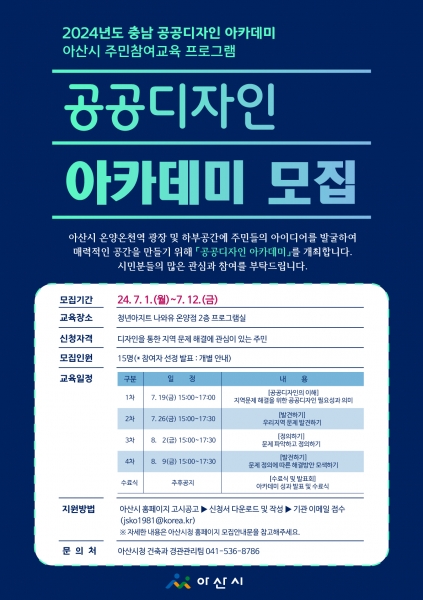 아산시 ‘공공디자인 아카데미’ 개최…1일부터 참여자 모집