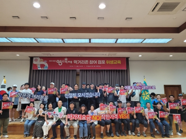 이날 교육에서는 여름철 식품 위생 안전에 대한 전문강사 교육과 한시 영업신고 절차 안내, 바가지요금 등 불공정 상거래행위 근절을 포함한 손님맞이 인식개선 교육이 진행됐다.