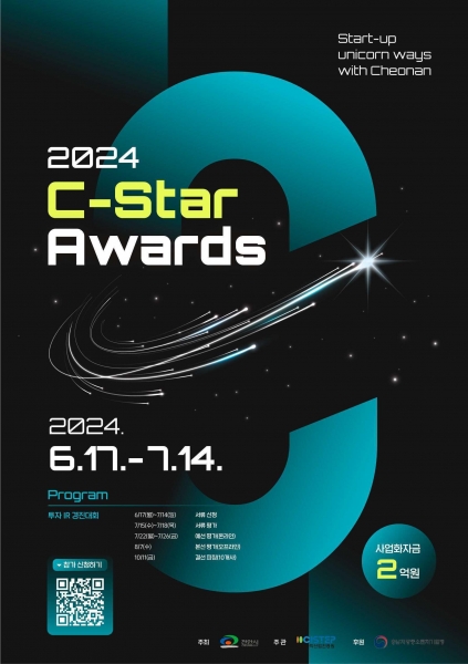 시는 오는 10월까지 ‘C-Star Awards 2024’를 열고 천안의 미래 유니콘 기업과 우수한 스타트업 인프라를 국내외 창업생태계에 홍보한다고 3일 밝혔다.