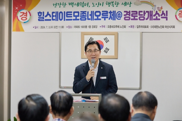 박 시장은 또 “아산에 540여 개 마을 단위 중 경로당이 없는 곳이 아직 50여 곳이나 있다 그런 차원에서 이렇게 좋은 아파트 시설 내 경로당이 문을 연 것을 축하드린다”며 “많은 분들이 친분을 쌓고 동네를 위해 할 일을 찾을 수 있는, 모범적인 운영을 해주시길 바란다”고 당부했다.