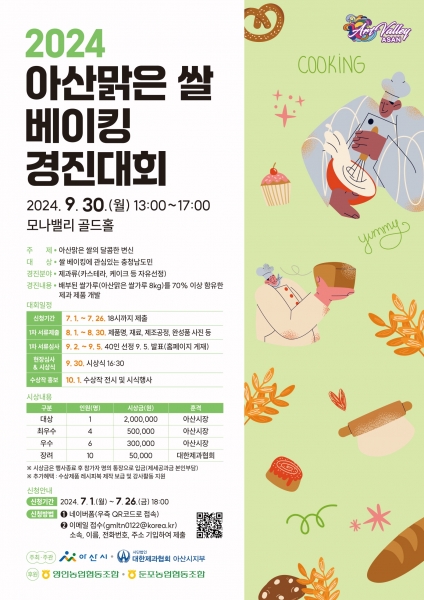 아산시, ‘2024년 아산맑은쌀 베이킹 경진대회’ 참가자 모집