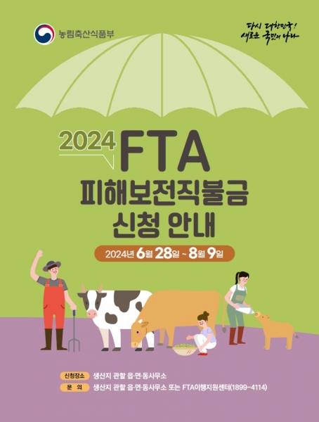 군은 관내 한우·육우·송아지 사육농가를 대상으로 8월 9일까지 자유무역협정 피해보전직접지불금 지급 신청을 받는다고 밝히고 해당 농가들의 많은 관심과 신청을 당부했다.