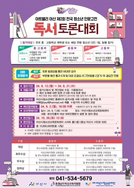 아산시, ‘아트밸리 아산 제2회 전국 청소년 인문고전 독서 토론대회’ 참가자 모집