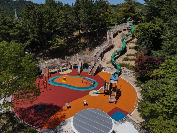 울음산공원 옆에 위치한 명륜공원에는 길이 약 25m의 대형 슬라이드와 안전을 위한 데크 등이 설치돼 6월 28일 개장됐다.