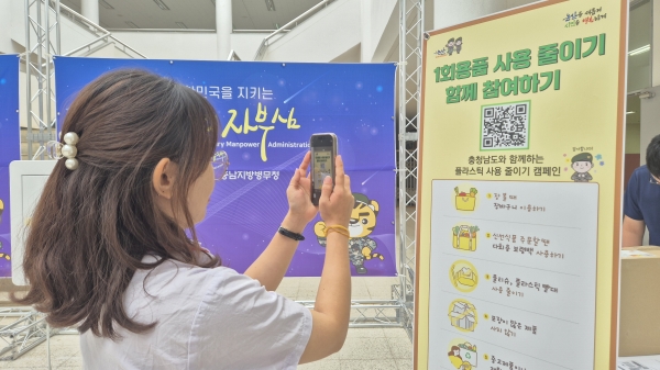 시는 8일 논산육군훈련소 입영심사대에서 진행된 입영문화제에서 홍보부스를 운영해 1회용품 및 플라스틱 사용 줄이기를 홍보했다.