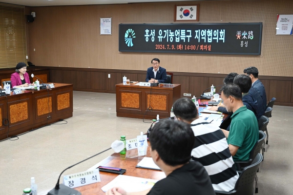 군에 따르면 지난 9일 군청 회의실에서 이용록 홍성군수를 비롯해 관계 부서장 및 관련 기관단체·전문가가 참석한 가운데 홍성 유기농업특구 지역협의회 위원 위촉식과 특구 계획 변경 수립 용역 중간보고회를 개최했다.