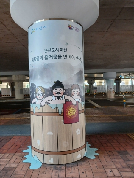 역 하부공간의 퇴색되고 낡은 회색 기둥에 단순한 관광지 소개를 넘어 아산의 정체성을 표현하는 데 주력했으며 교각의 콘크리트에 손상이 없으면서도 점검이 쉽도록 안전한 구조물 설치기법을 적용한 새로운 시도가 돋보인다.