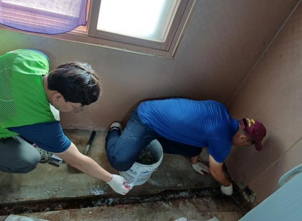 이에 보건소와 예빛봉사단은 어르신 주방 바닥의 썩은 나무를 제거하고 뱀과 쥐 출현 위치에 시멘트로 미장을 새롭게 했으며 주방 장판을 교체해 뱀과 쥐가 집안으로 들어오지 못하도록 안전한 환경을 조성했다.
