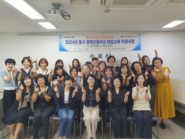 이번 교육은 여성들의 경제사회 참여를 확대하고 경제적 자립여건을 마련하는 ‘함께 일하기 좋은 여성친화도시’ 조성 사업의 일환으로 중구청과 대전여성인력개발센터가 협업해‘노인인지활동 강사양성과정’을 6월부터 한달 간 진행했으며 수강료는 전액 구비로 지원됐다.