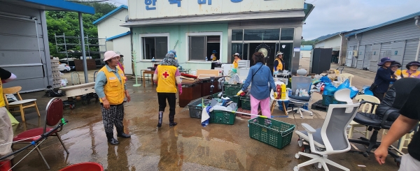 △부여군자율방재단, △임천면·충화면 자율방범대, △대한적십자부여지구협의회, △새마을운동부여군지회 등 185명의 자원봉사자들이 임천면, 양화면, 세도면, 석성면 일원에서 침수 주택 집안 및 폐기물 정리, 피해지역 도로 토사 및 수목 제거, 기숙사와 사무실 정리 등 복구 작업을 진행했다.