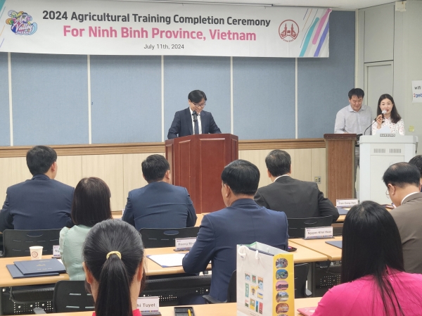 농업기술센터 김정규 소장은 연수생 전원에 수료증과 기념품을 전달하며 “이번 농업연수 기간에 습득한 농업기술과 현장 경험들이 닌빈성의 농업 발전에 실질적인 도움이 되길 바란다”며 “농업연수를 계기로 농업뿐만 아니라 더 다양한 분야에서 상호 발전을 이뤄내는 관계가 되길 바란다”고 말했다.