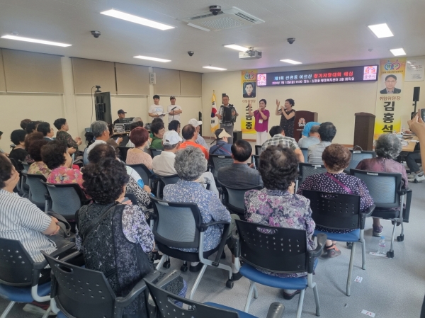 대상은 신관동에 거주하는 65세 이상 어르신들로 이날 예심에는 그동안 갈고닦은 실력을 뽐내려는 34개팀이 참여해 열띤 경연을 펼쳤다.
