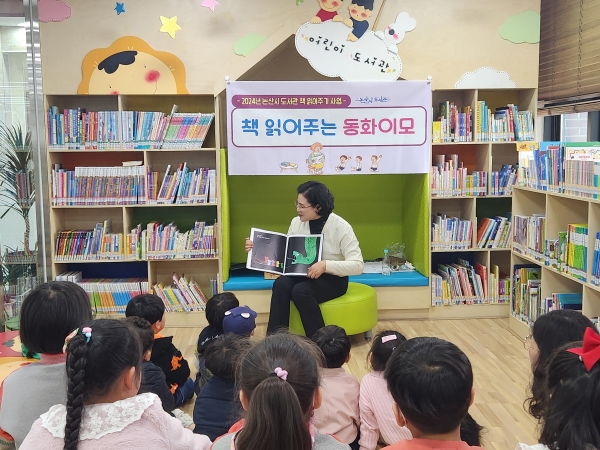 2024년 신규 사업으로 추진하고 있는 ‘책 읽어주는 동화이모’는 관내 유치원 및 어린이집 영유아를 대상으로 하며 논산열린· 강경· 연무도서관 등 3개소에서 동화이모가 직접 동화를 읽어주는 프로그램이다.