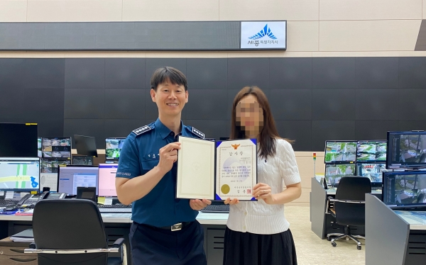 [Ytv영상스토리] 세종남부경찰서는 지난 15일 세종시 도시통합정보센터에서 실종된 치매노인 수색에 적극 협조해 조기발견에 기여한 실무관 A씨에게 감사장을 수여했다.