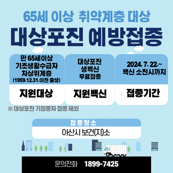 아산시, 65세 이상 취약계층 대상포진 무료 예방접종 실시
