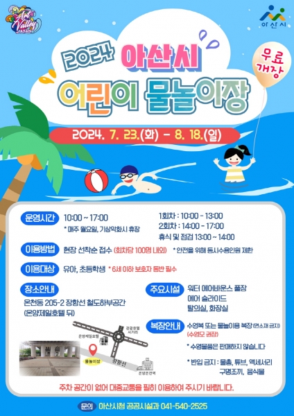 시 관계자는 “물놀이장에 대한 별도의 주차장이 마련되어 있지 않아 인근 공영주차장이나 대중교통 이용을 권장하며 물놀이장 공간이 협소해 동시 수용인원이 제한된다는 점 참고하길 바란다”고 말했다.