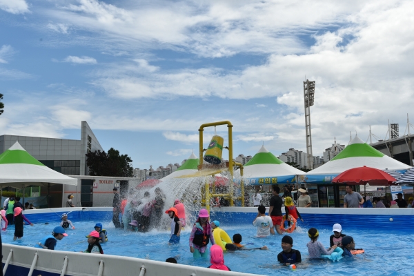 올해 물놀이장에서는 대형슬라이드, 에어바운스, 유수풀 등 각종 물놀이 시설뿐 아니라, 평상존, 테이블존 등 이용객들에게 쾌적한 휴게환경을 제공하기 위해 새롭게 조성한 부대시설을 만나 볼 수 있다.