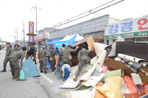 논이 물에 잠겼을 경우에는 벼잎 끝만이라도 물 위로 나올 수 있도록 서둘러 물 빼기 작업을 하고 벼 줄기나 잎에 묻은 흙과 오물을 제거해야 하며 물에 잠긴 논에는 흰잎마름병, 도열병, 벼멸구 등 병해충이 발생할 가능성이 있으므로 병해충 방제를 위한 약제를 살포해야 한다.