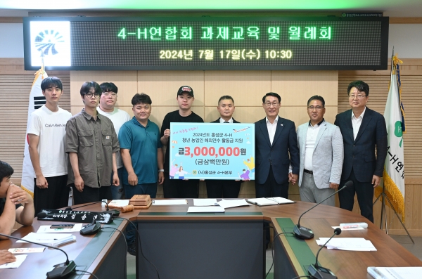 한편 홍성군 대표 청년농업인 후원단체인 사단법인 홍성군4-H본부도 이날 행사에 참석해 이용록 군수의 군정 비전에 적극 동참의 뜻을 밝히며 해외연수 활동지원금 300만원을 기부하며 청년 농업인들을 격려했다.