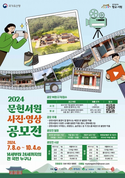 한편 이번 공모전은 국가유산청의 향교·서원 국가유산 활용사업의 하나로 국가유산청, 충남도, 군이 후원하며 문화유산연구소 명심이 주관한다.