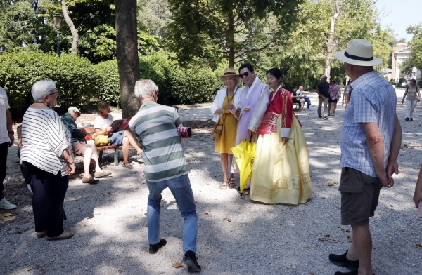 시그니처한복의 우아함은 전 세계에서 모인 베네치아 방문객들의 이목을 집중시켰고 한복의 아름다움을 극찬하며 함께 사진을 찍자는 요청이 이어지기도 했다.