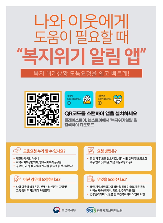 부여군 관계자는 “도움이 필요한 주변의 어려운 이웃이 있다면, 복지위기알림앱이나 복건복지상담센터129로 연락주시기 바란다”고 말했다.