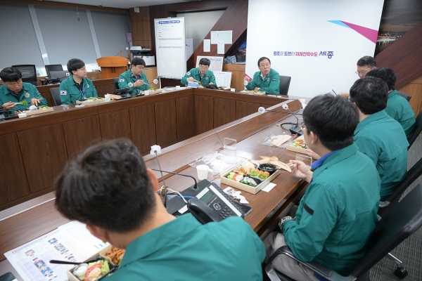 이날 오찬은 연이은 집중호우에도 긴장의 끈을 놓지 않고 일사불란한 재난대응체계 가동에 힘쓴 직원들을 격려하기 위해 마련됐다.