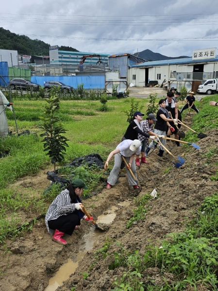 이정열 중부대 총장을 비롯해 중부대 항공서비스학전공 학생 및 교수, 직원 등 40여명은 추부면 일원 농가를 찾아 배수로의 흙과 쓰레기를 치우고 모종 심기를 도왔다.