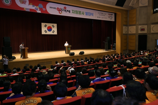 [Ytv영상스토리] 대전시는 24일 시청 대강당에서 대전시와 5개 자치구 자원봉사센터, 8개 자원봉사단체와 자원봉사자가 참여하는 ‘대전0시축제 자원봉사’발대식을 개최했다.