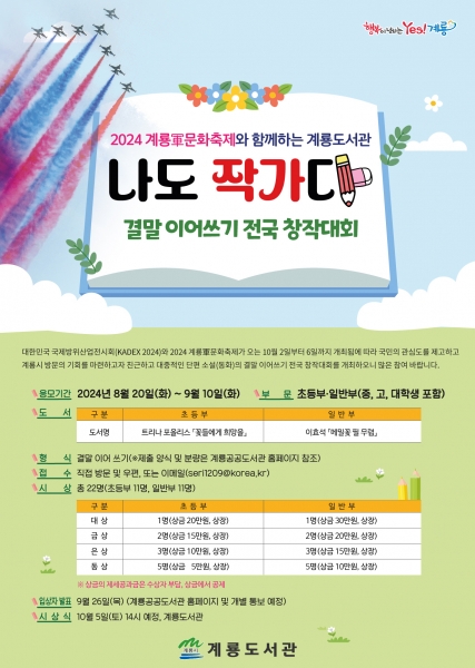 [Ytv영상스토리] 계룡시는 오는 9월 독서의 달을 앞두고 ‘나도 작가다, 결말 이어 쓰기 전국 창작대회’를 개최한다고 밝혔다.
