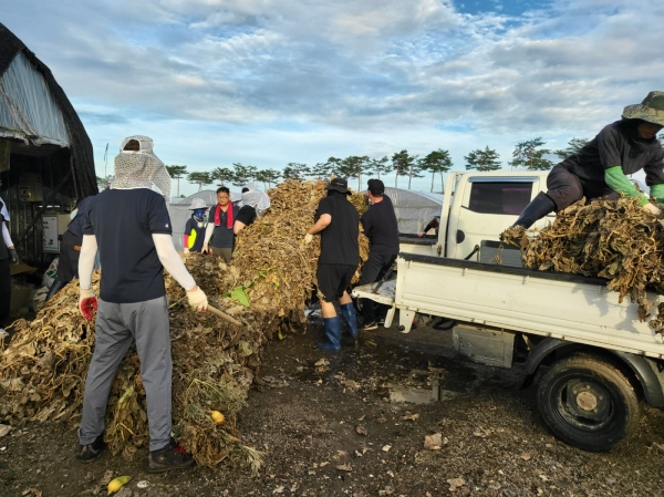 또한, 서울시에 거주하는 개인 자원봉사자는 부여군의 수해복구를 위해 새벽 기차를 타고 또바기 봉사단과 합류해 하우스 내 부산물 제거에 참여했다.