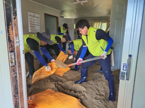 류상우 대표를 비롯한 임직원 20여명은 광석면 자율방재단과 함께 장비를 동원해 침수 주택에 쌓인 토사를 제거하고 훼손된 가재도구를 씻는 등 집 안과 밖을 정돈했다.