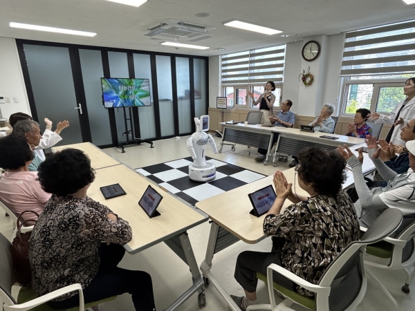 ‘실벗’을 활용한 인지훈련에서 로봇은 어르신과 상호작용하며 보조교사의 역할을 수행하고 텔레비전 화면과 스마트 패드는 시·청각 자극을 동시에 제공해 참여자들의 높은 몰입도와 흥미를 유발한다.