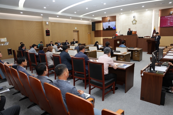 김경제 의장은 개회사를 통해“이번 호우로 인해 피해를 입으신 군민 여러분들께 위로와 유감의 뜻을 전하고 신속한 복구를 위해 모든 노력을 다하겠다”고 말하며 “5만 서천군민을 대표하는 의장이라는 직책을 맡겨주셔서 감사드리며 군민과 가장 가까운 곳에서 오직 군민만을 위한 강한 의회를 동료 의원 여러분과 함께 만들어 나가겠다”고 말했다.