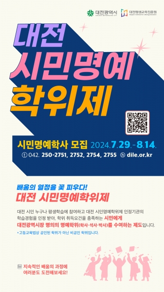 [Ytv영상스토리] 대전시와 대전평생교육진흥원은‘2024년 대전 시민명예학위제 시민명예학사’대상자를 8월 14일까지 모집한다.