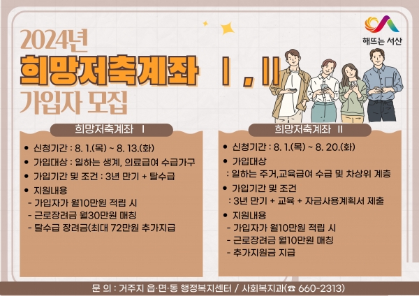 서산시, 2024년 희망저축계좌Ⅰ·Ⅱ 신규가입자 모집