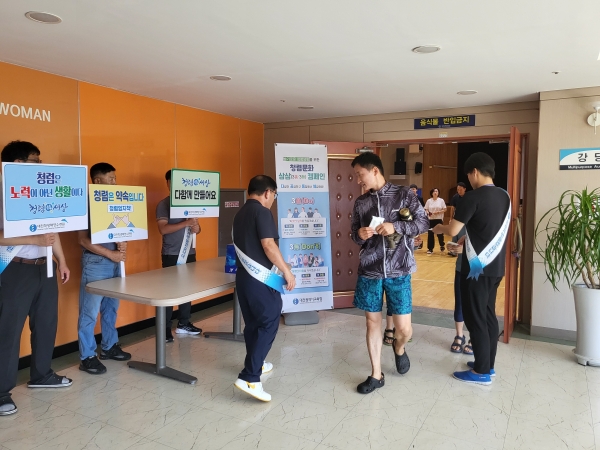 직원들이 순환하며‘청렴海 캠페인’ 피케팅을 실시했다으로써 직원들의 참여 및 관심도를 높이고 직장 내 청렴 문화를 확산하기 위한 직원연수를 강화하는 등 내부청렴도 향상을 위해서도 최선을 다하고 있다.