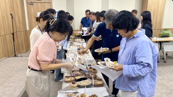 특히 알밤치즈바스크케이크, 밤찰떡빵, 알밤쿠키, 밤테린느 등의 간식 상품이 선보인 가운데 참석자들이 시제품을 시식하고 평가하는 등 다양한 의견을 나눴다.