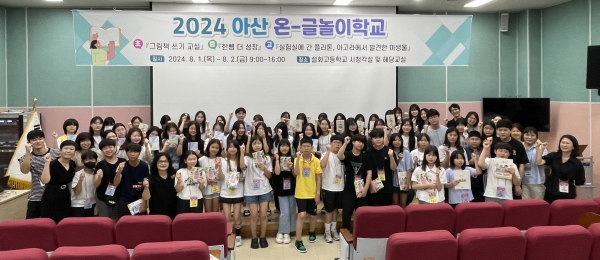 ‘2024년 아산 온-글놀이학교’는 초·중·고 학교급별 학생 60여명과 교사 12명이 초등학생은 ‘그림책 쓰기 교실’, 중학생은 ‘한 뼘 더 성장’, 고등학생은 ‘실험실에 간 플라톤, 아고라에서 발견한 미생물’을 활동 주제로 작가와의 만남과 다양한 독후 활동으로 설화고등학교에서 진행될 예정이다.