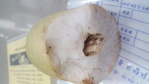 무는 붕소가 부족하거나 석회가 과다할 경우 뿌리 속이 흑갈색으로 변하고 심하면 속이 비게 돼 상품성을 잃게 된다.
