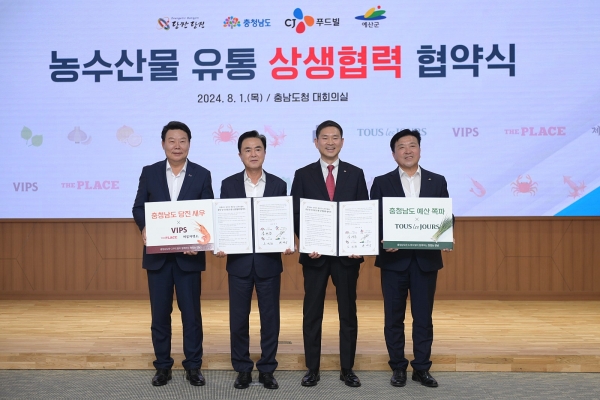[Ytv영상스토리] 예산군은 지난 1일 충남도청 대회의실에서 최재구 예산군수와 김태흠 충남도지사, 김찬호 CJ푸드빌㈜ 대표 등이 참석한 가운데 농산물 판로 확대를 위해 충남도와 글로벌 외식기업인 CJ푸드빌㈜과의 업무협약을 체결했다고 밝혔다.