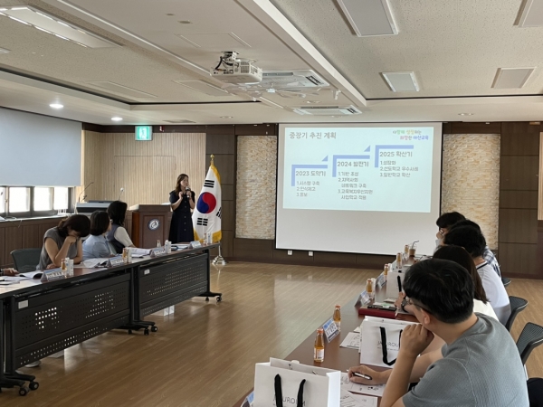 이번 위원회는 정기협의회로 개최됐으며 시범교육지원청 2년 차 운영에 대한 중간 점검 및 앞으로의 방향을 설정하고자 중장기 추진 계획에 따른 2년 차 운영 현황 2024년도 상반기 운영 현황 및 하반기 운영 계획 공유 학교와 지역사회 연계 강화를 위한 지역자원 목록 자료집 개발 등의 논의가 이루어졌다.