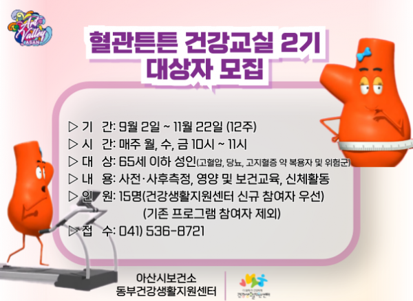 아산시보건소 심뇌혈관질환 예방 ‘혈관튼튼건강교실’ 2기 모집