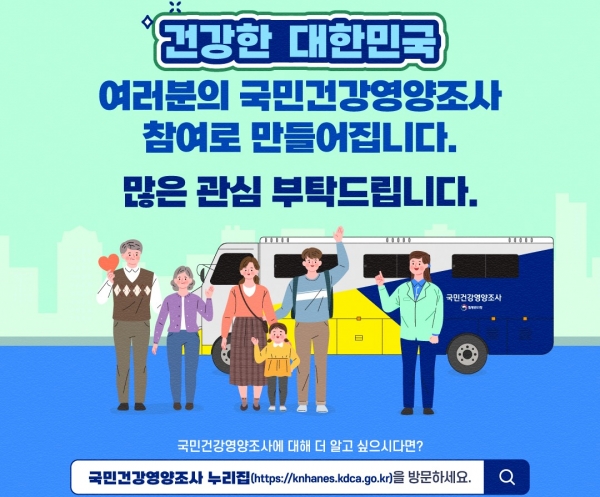 국민건강영양조사는 ‘국민건강증진법 제16조’에 따라 국민의 건강 수준, 건강 관련 의식·행태, 식품·영양 섭취 실태 등을 파악해 건강증진·만성질환 정책의 목표설정 및 효과 평가, 건강수준 국제비교, 질병 예방 및 연구에 활용하기 위해 질병관리청이 실시하는 법정 조사다.