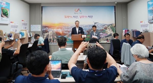 박경환 서산시 일자리경제과장은 7일 시청 브리핑룸에서 기자회견을 열고 소상공인의 경영을 지원하기 위한 144억원을 투입해 여섯 가지 중점 시책에 총력을 기울이고 있다고 밝혔다.