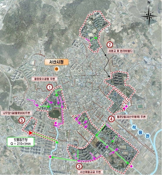 총사업비는 242억원으로 시는 2026년 말까지 서령상가 및 중앙호수공원, 서령고등학교, 서산여자중학교 등 6개 일원에 사업을 추진해 침수에 대응할 방침이다.